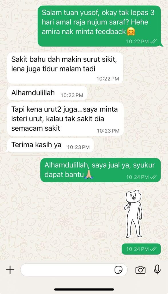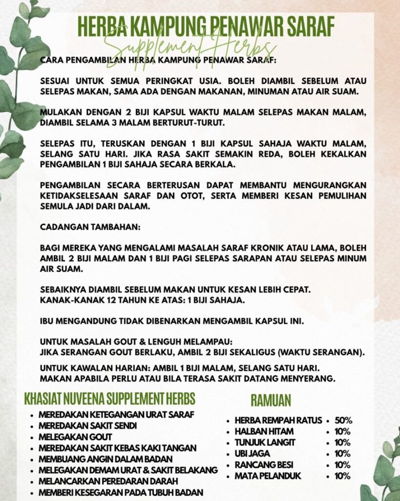 Dengan penggunaan gabungan herba terpilih khas untuk sakit saraf, ada herba yang sukar ditemui, ada yang tumbuh di kawasan tertentu sahaja, dan ada pula yang memerlukan proses peraman berminggu-minggu untuk memastikan khasiatnya benar-benar meresap. Kami memilih setiap herba dengan teliti bagi menghasilkan formula rawatan sakit saraf yang berkesan dan selamat digunakan!