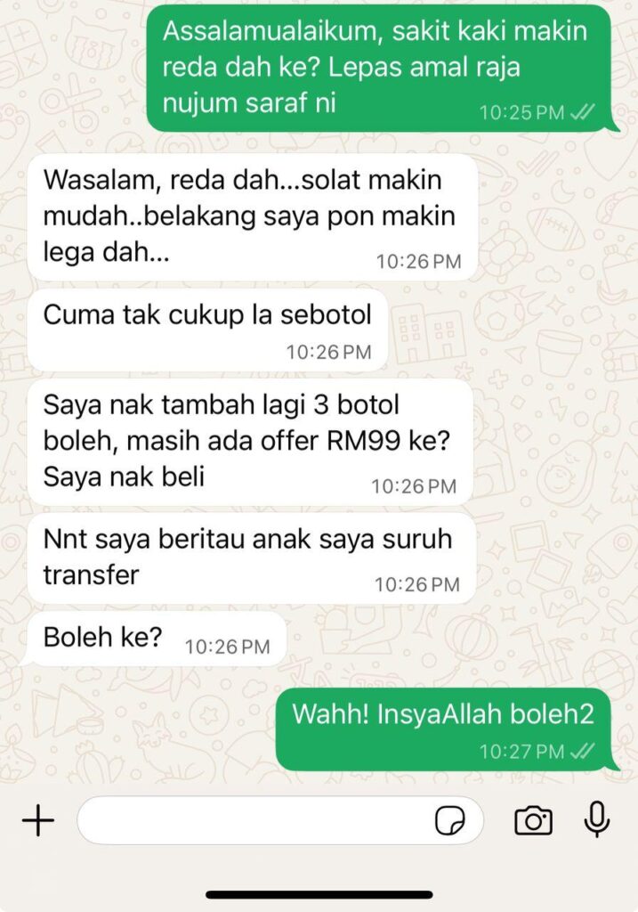 Sendi terasa ringan, pergerakan lebih lancar, sujud pun jadi lebih selesa dan penuh khusyuk
